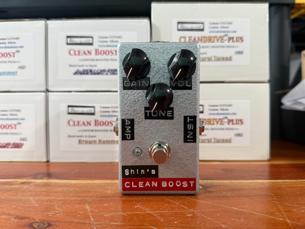 The Shin's Clean Boost- this is the lower gain version of the clean drive pedal. This may be one of the most versatile and best sounding boosts on the market. Shin's got the special sauce and he's not afraid to use it. Whether you want to juice the amp a bit or add body. The clean boost runs the gambit. The clean boost adds a great harmonic content that makes your base tone even better. Cheers to Shin's Music Tokyo for creating this amazing pedal.